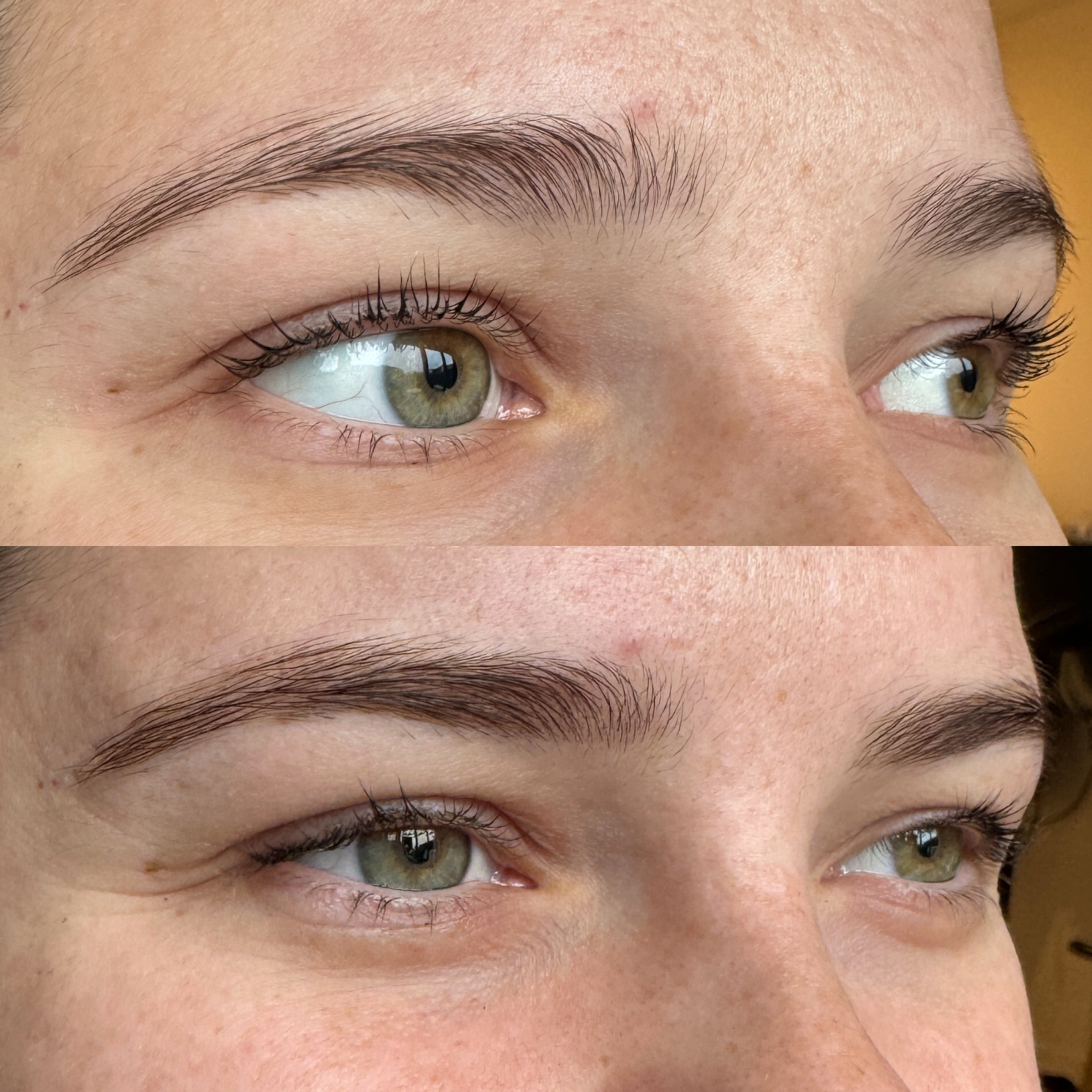The tint can last up to 4-6 weeks with proper aftercare, depending on your natural lash/brow cycle.